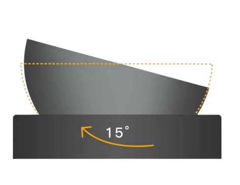 Rymmer cirka 250 gram mat när den lutas 15 grader