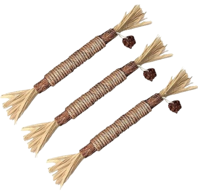 När katten leker med denna så kommer den samtidigt att bita på stråna vilket gör att dem får bort smuts från tänderna. God myn hälsa för våra pälsklingar.